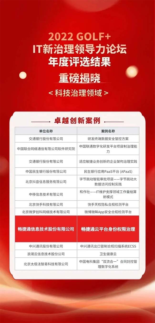信通院主辦的“2022年GOLF+IT新治理領導力論壇年度評選活動”旨在“強化科技支撐,激活治理效能”,幫助企業構建科學的治理理念和運行體系,被譽為IT治理領域風向標。