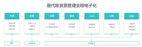 用友易代賬發票管理體系為企業提供了一站式的解決方案,實現了票據的開、收、查、識、算、記、檔一體化流程。大幅減少重復工作,降低票據風險,讓客戶和代賬會計都能更加輕松、高效地進行發票管理。