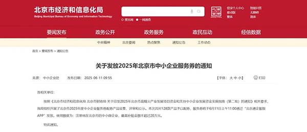 為進一步降低中小企業創新發展成本,滿足日益增長的服務需求,北京市經濟和信息化局近日宣布補充2025年度北京市中小企業服務券供給額度,服務券將持續發放至9月份。