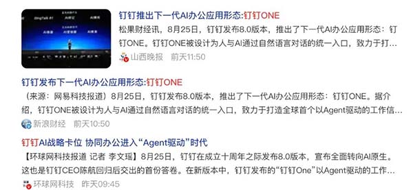 是同樣以“AI”為核心,但戰略路徑截然不同的——釘釘,其“釘釘One”產品的發布,同樣體現了向“一體化”邁進的思路。
